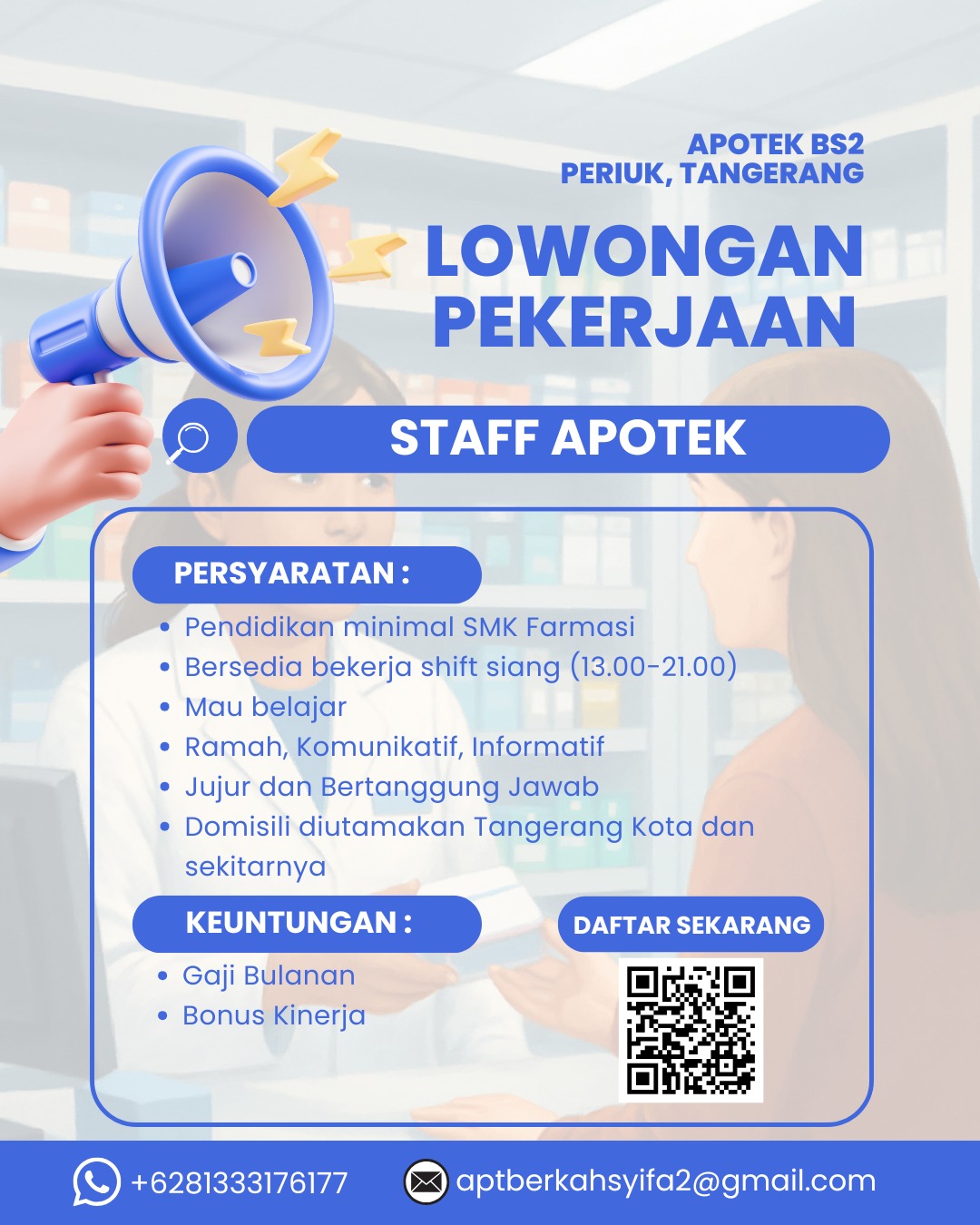 Disclaimer: Farmacare bertindak sebagai platform penyedia informasi dan tidak bertanggung jawab atas isi maupun keakuratan materi lowongan kerja yang dipasang oleh pihak ketiga. Kami mengimbau seluruh pelamar untuk selalu waspada terhadap segala bentuk penipuan yang mengatasnamakan proses rekrutmen. Ingatlah bahwa proses rekrutmen yang resmi tidak pernah memungut biaya apa pun (seperti biaya tiket, akomodasi, atau biaya admin). Selalu lakukan verifikasi mandiri sebelum memberikan data pribadi atau melakukan transaksi.