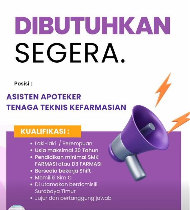 Disclaimer: Farmacare bertindak sebagai platform penyedia informasi dan tidak bertanggung jawab atas isi maupun keakuratan materi lowongan kerja yang dipasang oleh pihak ketiga. Kami mengimbau seluruh pelamar untuk selalu waspada terhadap segala bentuk penipuan yang mengatasnamakan proses rekrutmen. Ingatlah bahwa proses rekrutmen yang resmi tidak pernah memungut biaya apa pun (seperti biaya tiket, akomodasi, atau biaya admin). Selalu lakukan verifikasi mandiri sebelum memberikan data pribadi atau melakukan transaksi.