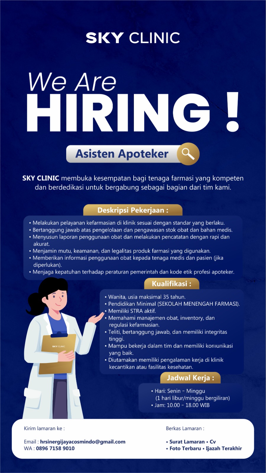 Disclaimer: Farmacare bertindak sebagai platform penyedia informasi dan tidak bertanggung jawab atas isi maupun keakuratan materi lowongan kerja yang dipasang oleh pihak ketiga. Kami mengimbau seluruh pelamar untuk selalu waspada terhadap segala bentuk penipuan yang mengatasnamakan proses rekrutmen. Ingatlah bahwa proses rekrutmen yang resmi tidak pernah memungut biaya apa pun (seperti biaya tiket, akomodasi, atau biaya admin). Selalu lakukan verifikasi mandiri sebelum memberikan data pribadi atau melakukan transaksi.