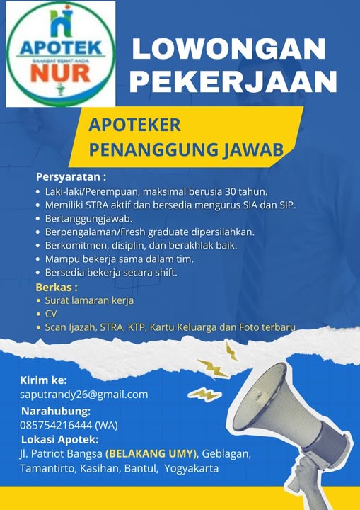 Disclaimer: Farmacare bertindak sebagai platform penyedia informasi dan tidak bertanggung jawab atas isi maupun keakuratan materi lowongan kerja yang dipasang oleh pihak ketiga. Kami mengimbau seluruh pelamar untuk selalu waspada terhadap segala bentuk penipuan yang mengatasnamakan proses rekrutmen. Ingatlah bahwa proses rekrutmen yang resmi tidak pernah memungut biaya apa pun (seperti biaya tiket, akomodasi, atau biaya admin). Selalu lakukan verifikasi mandiri sebelum memberikan data pribadi atau melakukan transaksi.