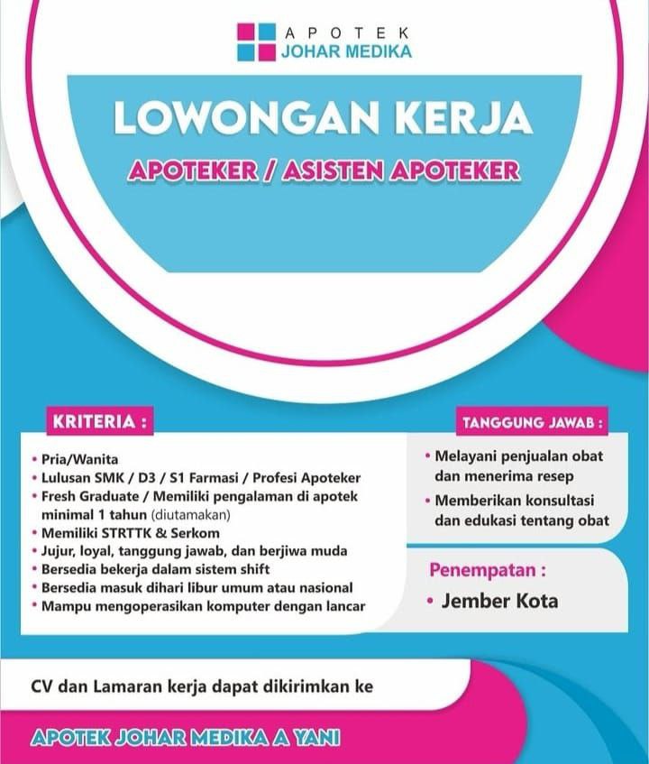 Disclaimer: Farmacare bertindak sebagai platform penyedia informasi dan tidak bertanggung jawab atas isi maupun keakuratan materi lowongan kerja yang dipasang oleh pihak ketiga. Kami mengimbau seluruh pelamar untuk selalu waspada terhadap segala bentuk penipuan yang mengatasnamakan proses rekrutmen. Ingatlah bahwa proses rekrutmen yang resmi tidak pernah memungut biaya apa pun (seperti biaya tiket, akomodasi, atau biaya admin). Selalu lakukan verifikasi mandiri sebelum memberikan data pribadi atau melakukan transaksi.