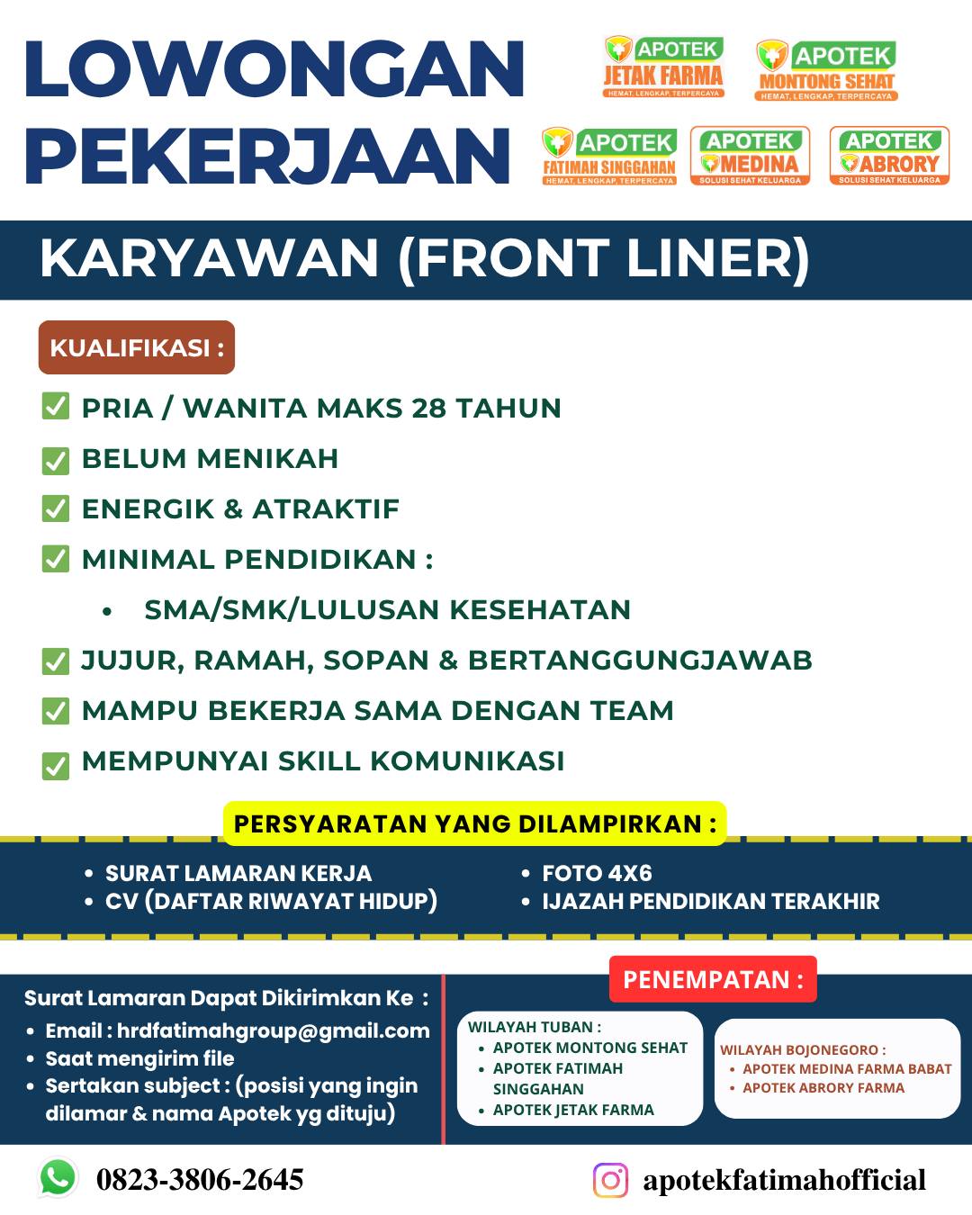 Disclaimer: Farmacare bertindak sebagai platform penyedia informasi dan tidak bertanggung jawab atas isi maupun keakuratan materi lowongan kerja yang dipasang oleh pihak ketiga. Kami mengimbau seluruh pelamar untuk selalu waspada terhadap segala bentuk penipuan yang mengatasnamakan proses rekrutmen. Ingatlah bahwa proses rekrutmen yang resmi tidak pernah memungut biaya apa pun (seperti biaya tiket, akomodasi, atau biaya admin). Selalu lakukan verifikasi mandiri sebelum memberikan data pribadi atau melakukan transaksi.