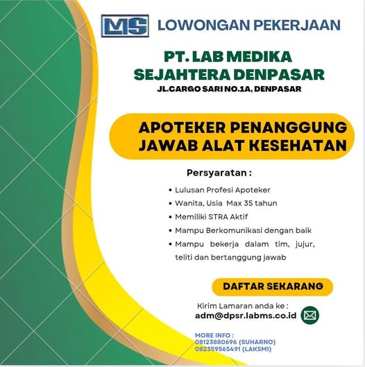 Disclaimer: Farmacare bertindak sebagai platform penyedia informasi dan tidak bertanggung jawab atas isi maupun keakuratan materi lowongan kerja yang dipasang oleh pihak ketiga. Kami mengimbau seluruh pelamar untuk selalu waspada terhadap segala bentuk penipuan yang mengatasnamakan proses rekrutmen. Ingatlah bahwa proses rekrutmen yang resmi tidak pernah memungut biaya apa pun (seperti biaya tiket, akomodasi, atau biaya admin). Selalu lakukan verifikasi mandiri sebelum memberikan data pribadi atau melakukan transaksi.