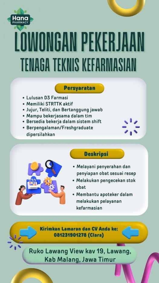 Disclaimer: Farmacare bertindak sebagai platform penyedia informasi dan tidak bertanggung jawab atas isi maupun keakuratan materi lowongan kerja yang dipasang oleh pihak ketiga. Kami mengimbau seluruh pelamar untuk selalu waspada terhadap segala bentuk penipuan yang mengatasnamakan proses rekrutmen. Ingatlah bahwa proses rekrutmen yang resmi tidak pernah memungut biaya apa pun (seperti biaya tiket, akomodasi, atau biaya admin). Selalu lakukan verifikasi mandiri sebelum memberikan data pribadi atau melakukan transaksi.