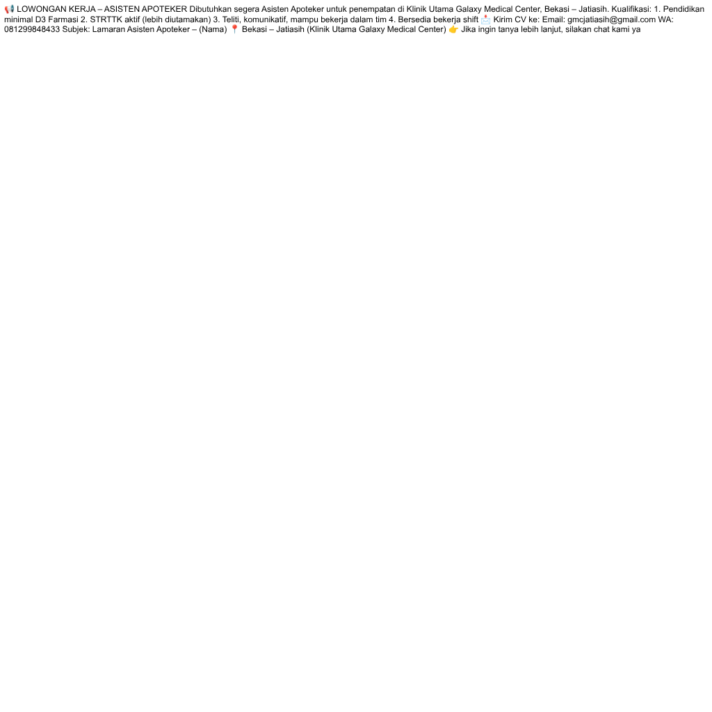 Disclaimer: Farmacare bertindak sebagai platform penyedia informasi dan tidak bertanggung jawab atas isi maupun keakuratan materi lowongan kerja yang dipasang oleh pihak ketiga. Kami mengimbau seluruh pelamar untuk selalu waspada terhadap segala bentuk penipuan yang mengatasnamakan proses rekrutmen. Ingatlah bahwa proses rekrutmen yang resmi tidak pernah memungut biaya apa pun (seperti biaya tiket, akomodasi, atau biaya admin). Selalu lakukan verifikasi mandiri sebelum memberikan data pribadi atau melakukan transaksi.