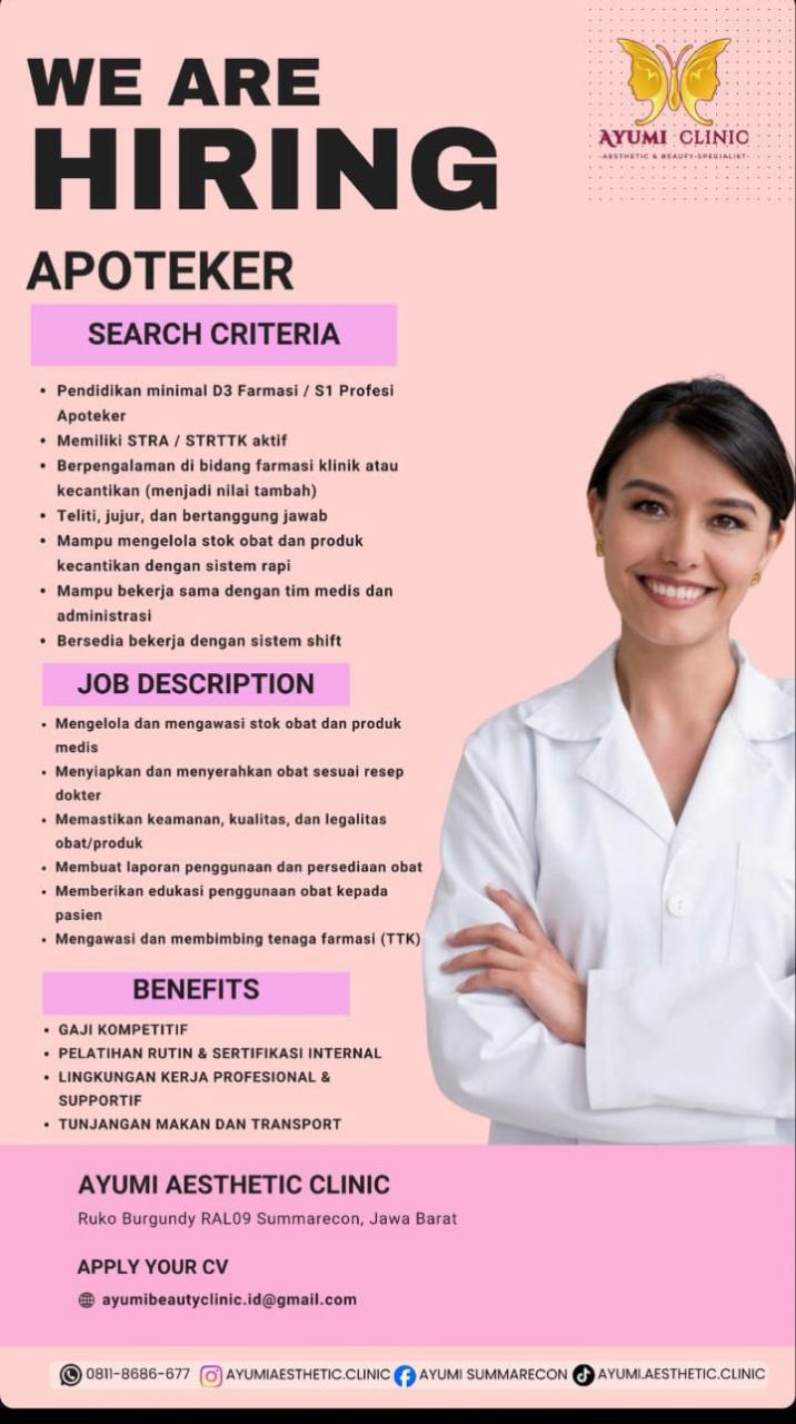 Disclaimer: Farmacare bertindak sebagai platform penyedia informasi dan tidak bertanggung jawab atas isi maupun keakuratan materi lowongan kerja yang dipasang oleh pihak ketiga. Kami mengimbau seluruh pelamar untuk selalu waspada terhadap segala bentuk penipuan yang mengatasnamakan proses rekrutmen. Ingatlah bahwa proses rekrutmen yang resmi tidak pernah memungut biaya apa pun (seperti biaya tiket, akomodasi, atau biaya admin). Selalu lakukan verifikasi mandiri sebelum memberikan data pribadi atau melakukan transaksi.