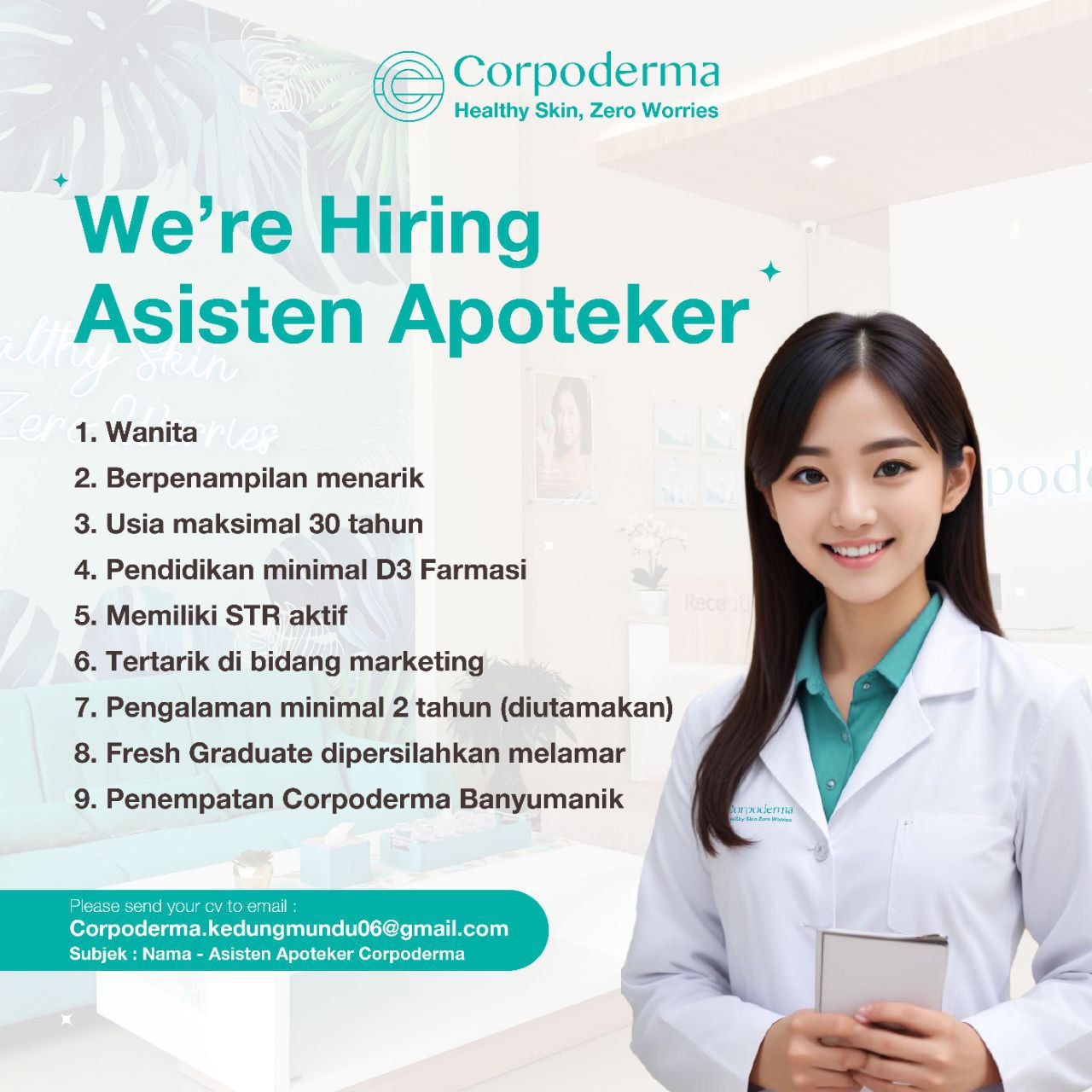 Disclaimer: Farmacare bertindak sebagai platform penyedia informasi dan tidak bertanggung jawab atas isi maupun keakuratan materi lowongan kerja yang dipasang oleh pihak ketiga. Kami mengimbau seluruh pelamar untuk selalu waspada terhadap segala bentuk penipuan yang mengatasnamakan proses rekrutmen. Ingatlah bahwa proses rekrutmen yang resmi tidak pernah memungut biaya apa pun (seperti biaya tiket, akomodasi, atau biaya admin). Selalu lakukan verifikasi mandiri sebelum memberikan data pribadi atau melakukan transaksi.
