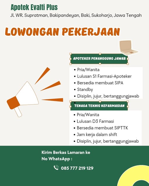 Disclaimer: Farmacare bertindak sebagai platform penyedia informasi dan tidak bertanggung jawab atas isi maupun keakuratan materi lowongan kerja yang dipasang oleh pihak ketiga. Kami mengimbau seluruh pelamar untuk selalu waspada terhadap segala bentuk penipuan yang mengatasnamakan proses rekrutmen. Ingatlah bahwa proses rekrutmen yang resmi tidak pernah memungut biaya apa pun (seperti biaya tiket, akomodasi, atau biaya admin). Selalu lakukan verifikasi mandiri sebelum memberikan data pribadi atau melakukan transaksi.