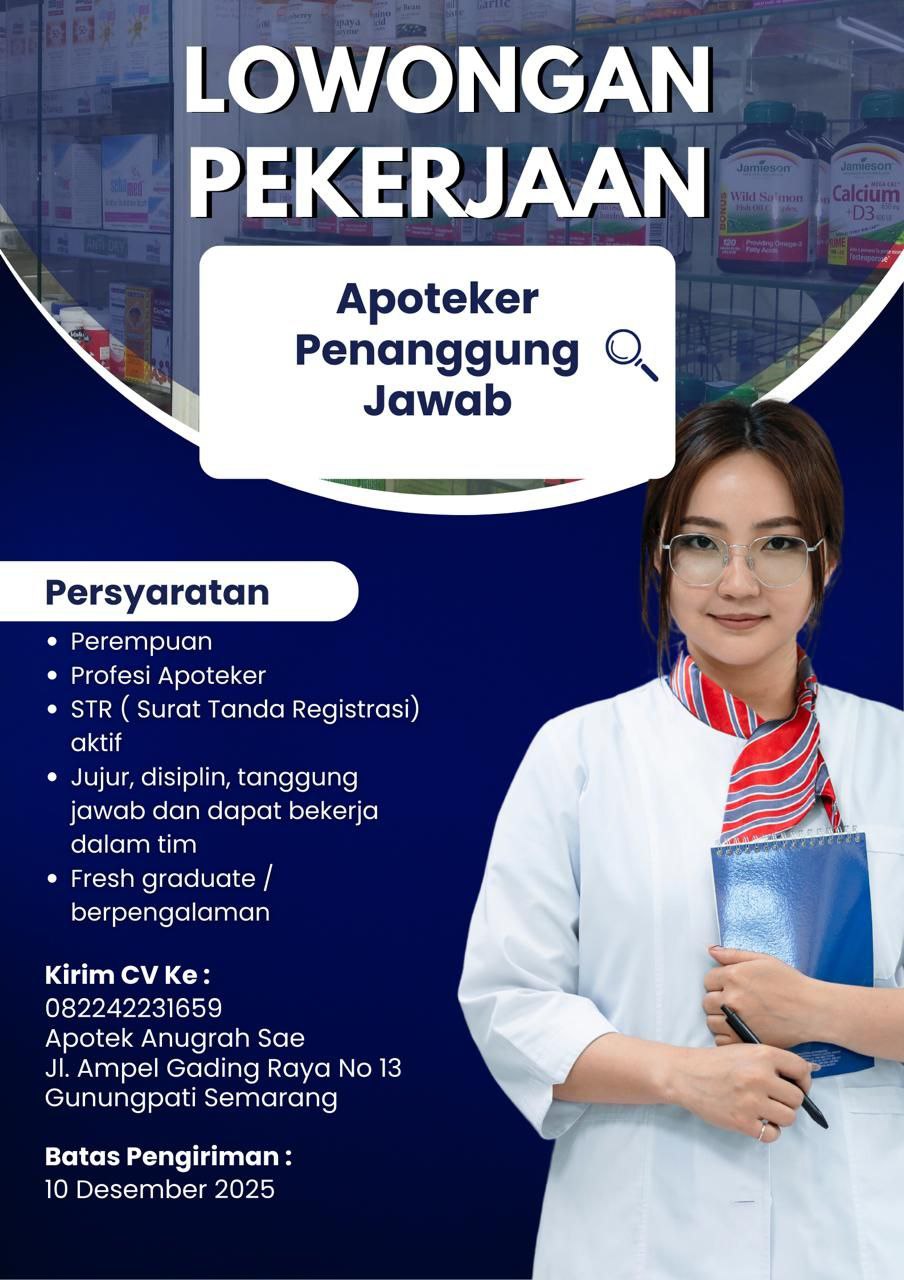 Disclaimer: Farmacare bertindak sebagai platform penyedia informasi dan tidak bertanggung jawab atas isi maupun keakuratan materi lowongan kerja yang dipasang oleh pihak ketiga. Kami mengimbau seluruh pelamar untuk selalu waspada terhadap segala bentuk penipuan yang mengatasnamakan proses rekrutmen. Ingatlah bahwa proses rekrutmen yang resmi tidak pernah memungut biaya apa pun (seperti biaya tiket, akomodasi, atau biaya admin). Selalu lakukan verifikasi mandiri sebelum memberikan data pribadi atau melakukan transaksi.