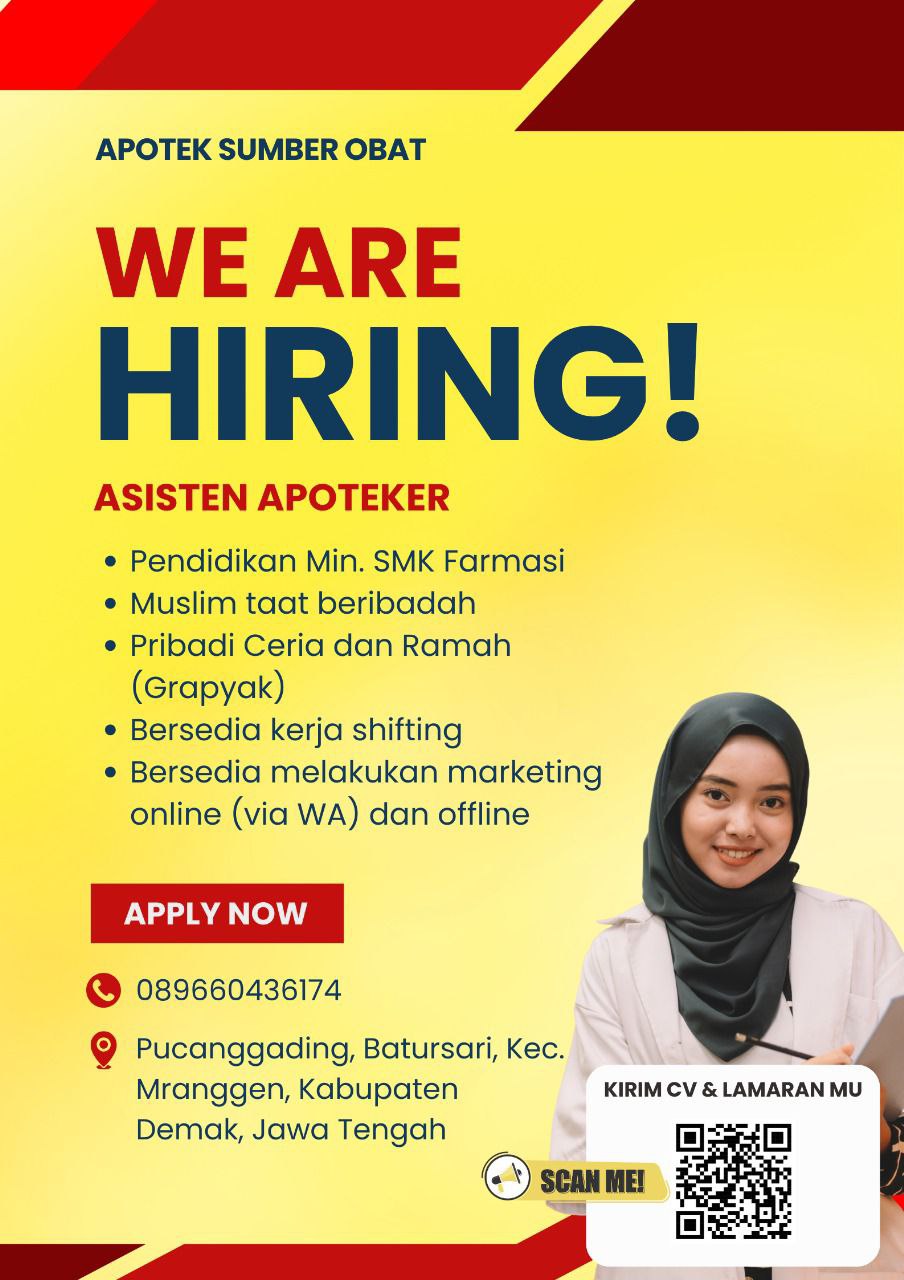 Disclaimer: Farmacare bertindak sebagai platform penyedia informasi dan tidak bertanggung jawab atas isi maupun keakuratan materi lowongan kerja yang dipasang oleh pihak ketiga. Kami mengimbau seluruh pelamar untuk selalu waspada terhadap segala bentuk penipuan yang mengatasnamakan proses rekrutmen. Ingatlah bahwa proses rekrutmen yang resmi tidak pernah memungut biaya apa pun (seperti biaya tiket, akomodasi, atau biaya admin). Selalu lakukan verifikasi mandiri sebelum memberikan data pribadi atau melakukan transaksi.