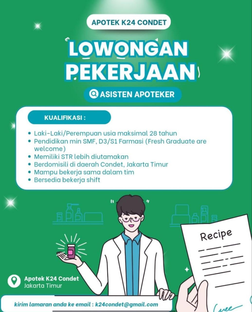 Disclaimer: Farmacare bertindak sebagai platform penyedia informasi dan tidak bertanggung jawab atas isi maupun keakuratan materi lowongan kerja yang dipasang oleh pihak ketiga. Kami mengimbau seluruh pelamar untuk selalu waspada terhadap segala bentuk penipuan yang mengatasnamakan proses rekrutmen. Ingatlah bahwa proses rekrutmen yang resmi tidak pernah memungut biaya apa pun (seperti biaya tiket, akomodasi, atau biaya admin). Selalu lakukan verifikasi mandiri sebelum memberikan data pribadi atau melakukan transaksi.