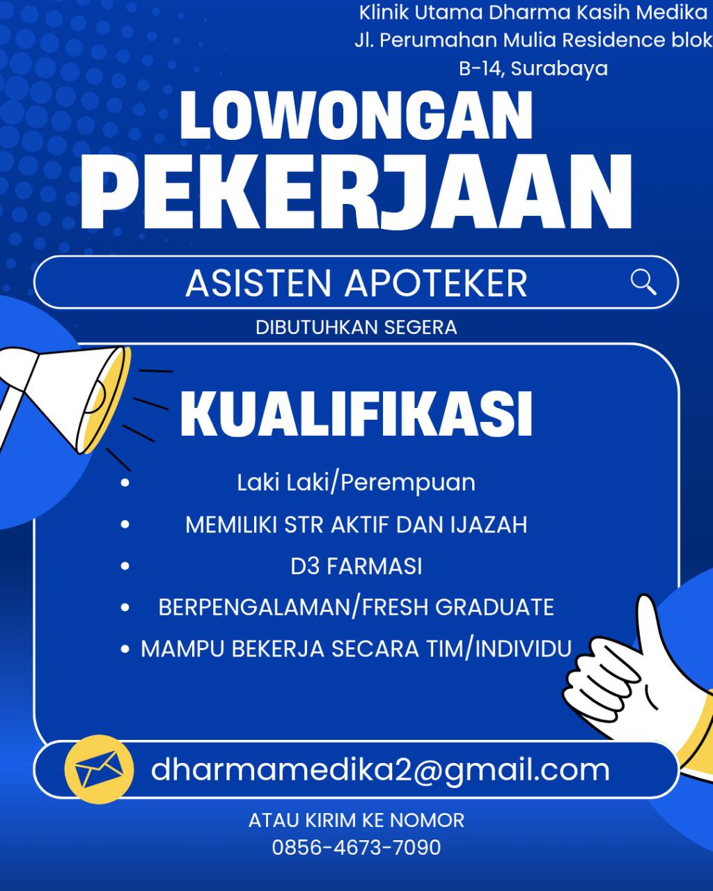 Disclaimer: Farmacare bertindak sebagai platform penyedia informasi dan tidak bertanggung jawab atas isi maupun keakuratan materi lowongan kerja yang dipasang oleh pihak ketiga. Kami mengimbau seluruh pelamar untuk selalu waspada terhadap segala bentuk penipuan yang mengatasnamakan proses rekrutmen. Ingatlah bahwa proses rekrutmen yang resmi tidak pernah memungut biaya apa pun (seperti biaya tiket, akomodasi, atau biaya admin). Selalu lakukan verifikasi mandiri sebelum memberikan data pribadi atau melakukan transaksi.