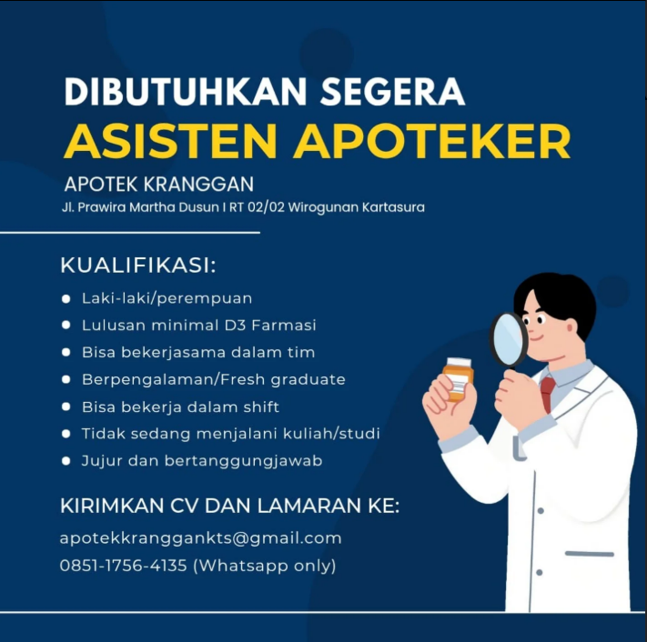 Disclaimer: Farmacare bertindak sebagai platform penyedia informasi dan tidak bertanggung jawab atas isi maupun keakuratan materi lowongan kerja yang dipasang oleh pihak ketiga. Kami mengimbau seluruh pelamar untuk selalu waspada terhadap segala bentuk penipuan yang mengatasnamakan proses rekrutmen. Ingatlah bahwa proses rekrutmen yang resmi tidak pernah memungut biaya apa pun (seperti biaya tiket, akomodasi, atau biaya admin). Selalu lakukan verifikasi mandiri sebelum memberikan data pribadi atau melakukan transaksi.